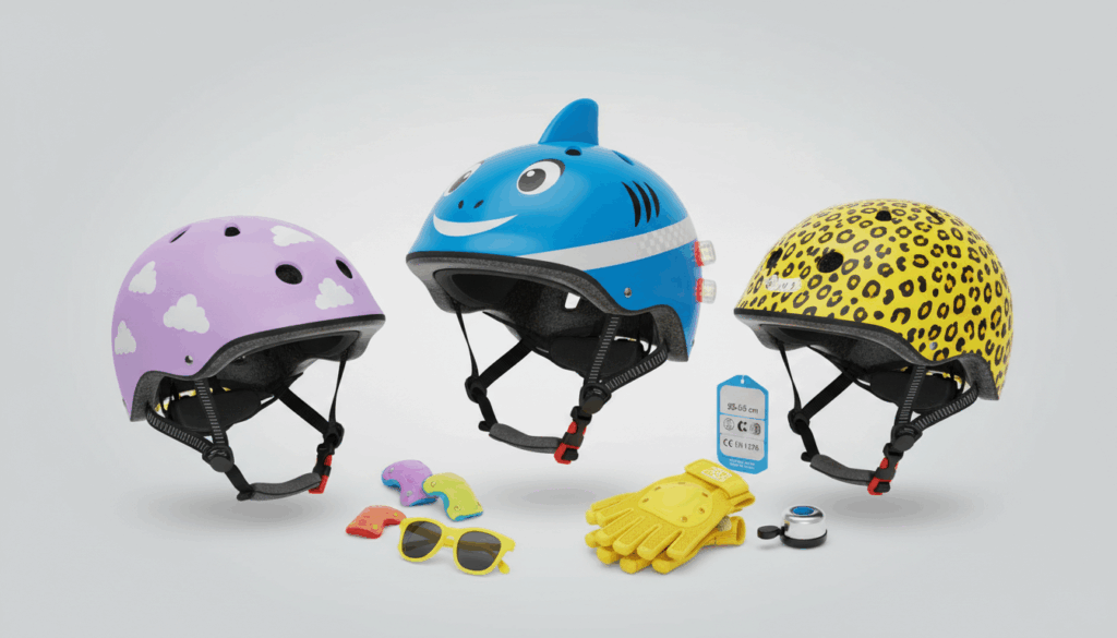Variationer i kategorien omfatter cykelhjelme til hverdagskørsel, skater-/rullehjelme og multi-sport modeller med sjove motiver og LED-belysning. Vælg en størrelse, der passer til barnets hovedmål, og prøv pasformen før køb. For inspiration kan du se udvalget hos Crazy Safety og Ladcyklen: Crazy Safety og Ladcyklen.