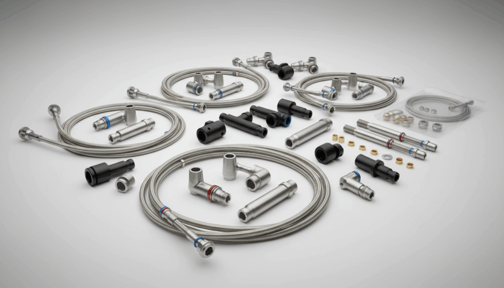 Sortimentet giver mulighed for opgradering eller reparation af systemet: længere slanger til mountainbikes, kortere til smalle rammer og forskellige endetyper og gevindstørrelser. Overvej komplette sæt med slange, fittings og tætningsdele for nem installation og tæt forbindelse. For at finde det rette udvalg kan du besøge Anyparts eller Bikepack.dk.