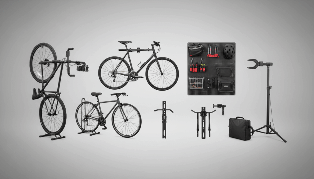 Dette område samler alt til cykelopbevaring og stativer: væg- og loftophæng, stående og væghængte løsninger, cykelkroge, bagagebærere og praktiske opbevaringsløsninger til værktøj og reservedele. Produkterne gør det nemt at hænge eller stille cykler sikkert og spare plads i garagen, hallen eller værkstedet. Variationer inkluderer væghængte ophæng, udstillingsstativer, kompakte mini-stativer og universelle beslag til kurve og bagage. Når du vælger, overvej vægtkapacitet, materialer (stål, aluminium), montering og kompatibilitet med din cykeltype. Cykelexperten.dk og Cykelpartner.dk.
