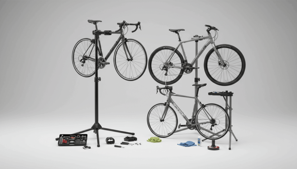 Udvalg omfatter bordmodel, gulvstående eller kompakte foldbare systemer og features som justerbar højde, drejefunktion og anti-slip base. Vælg tilbehør og klammer (f.eks. 100-5D/100-5C) til den cykeltype, du arbejder med. For inspiration og tilbehør kan du se udvalget hos partnerne Cykelpartner.dk og Bikepack.dk.