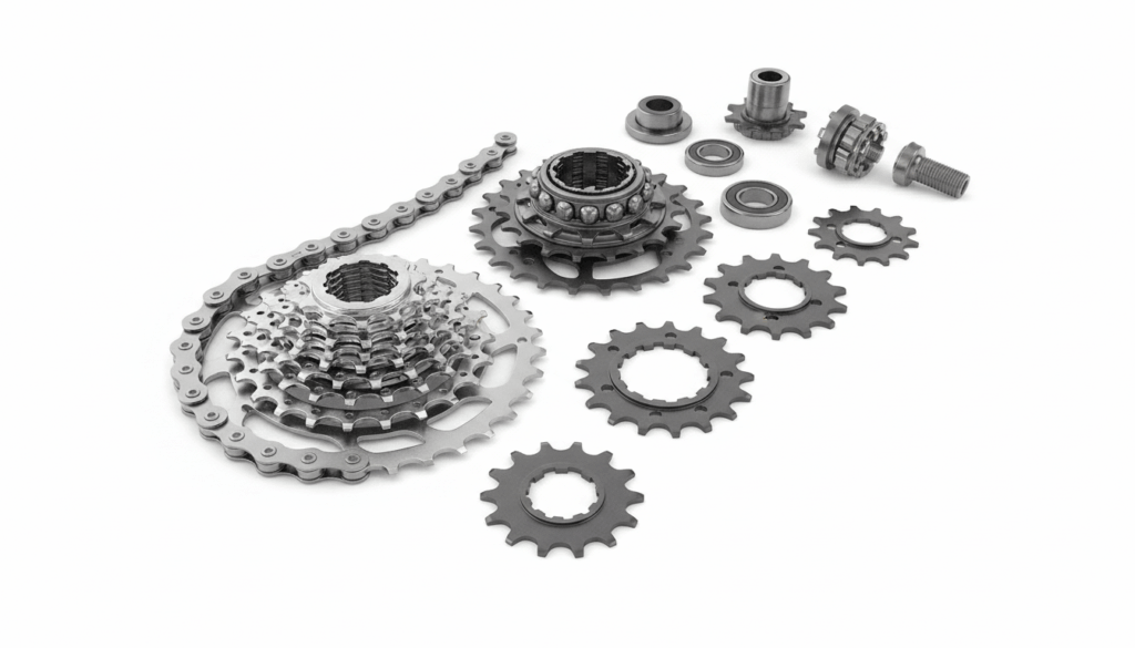 Produkter i feltet spænder fra individuelle tandhjul og komplette friløbssæt til kassettevarianter og tilbehør som lejer og monteringsdele, der passer til mange transmissioner og mærker. Ved køb bør du overveje antal tænder, modul/gear pitch, centerafstand og materiale samt korrosionsbestandighed. Overvej også montering og vedligeholdelse samt kompatibilitet med eksisterende kæde og kassette for en jævn, holdbar drivlinie i både fritids- og professionel brug.