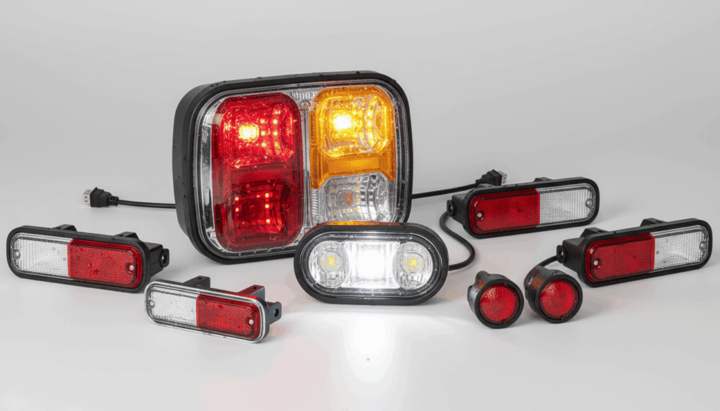 Variationerne spænder fra højre/venstre baglygter til enheder med integreret nummerpladelys, samt side markeringslygter i hvid og rød. Der findes modeller med 6–8 funktioner som stop, blink, tågelys, positionslys og baglys. Montering er ofte enkel med standardtilslutninger, og lygterne er designet til trailere, varevogne og erhvervskøretøjer, hvor holdbarhed og synlighed er afgørende.