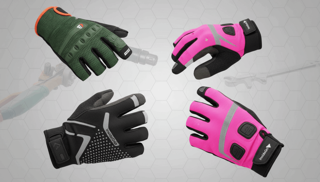 Typiske varianter inkluderer letvægts cykelhandsker med InsideGrip-teknologi for tæt, kontrolleret greb, polstrede kortfingrede modeller til længere ture og touchscreen-venlige fingertupper, så du kan bruge enheder uden at fjerne handskerne. Der findes også varianter til industri og have med kraftigt greb, mesh-back til ventilation og hi-vis design for sikkerhed.