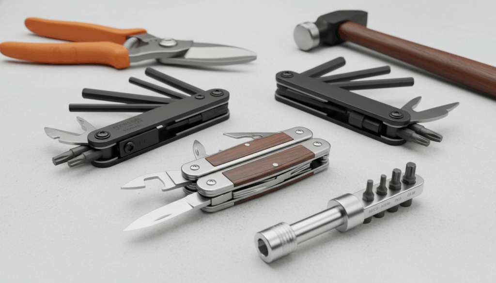 Værktøj dækker redskaber til reparationer og vedligeholdelse i hjemmet, på cyklen og i felten. Her finder du multitools, håndværktøj og cykelværktøj – fra små foldbare multitools med skruetrækkere og tang til robuste hamre, nøgler og saks. Produkterne fås i rustfrit stål eller letvægtsaluminium med ergonomiske greb og kompakt eller foldbart design, ofte med indbyggede bits og specialværktøjer som konusnøgler eller torx-sæt. Typiske anvendelser spænder fra små reparationer undervejs til hjemmevedligehold. Overvej brug, størrelse, materiale og antal funktioner samt opbevaring i tasken; vælg variationer, der passer til dine behov. Bikepack.dk og Cykelexperten.dk kan være nyttige kilder til kvalitetsværktøj.